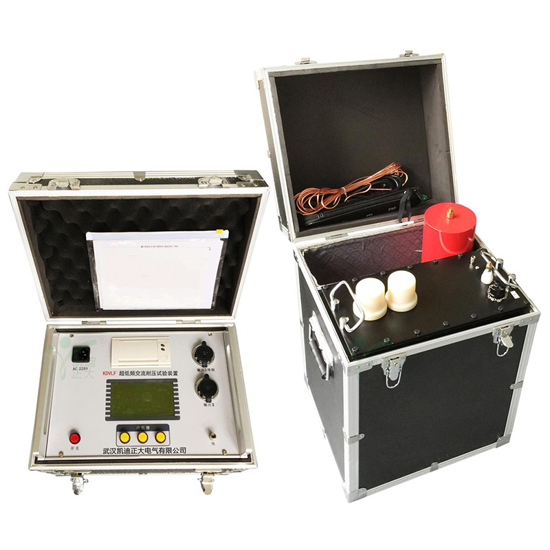 KDVLF-80 超低頻高壓發生器主要用于電力部門對PE(聚乙烯)/XLPE(交聯聚乙烯)等塑料電力電纜的非破壞性絕緣耐壓試驗,具有電源過流、高壓過流、油箱過熱保護功能,輸出調壓器不回零高壓不能啟動等功能,是傳統工頻耐壓試驗設備的換代。KDVLF系列超低頻高壓發生器接合了現代數字變頻新的技術,采用微機控制,升壓、降壓、測量、保護自動化,并且在自動升壓過程中能進行人工干預。由于電子化,所以體積小重量輕、大屏幕液晶顯示,清晰直觀、且能顯示輸出波形、打印機輸出試驗報告。