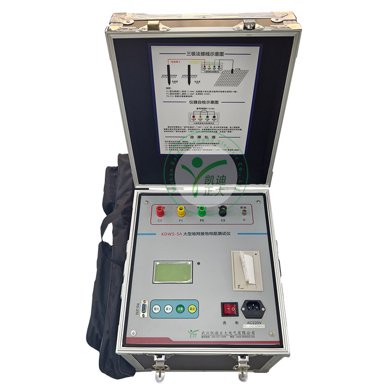 KDWS-5A型大型地網(wǎng)接地電阻測(cè)試儀,可測(cè)變電站地網(wǎng)(4Ω)、水火電廠、微波站(10Ω)、避雷針(10Ω)多用機(jī)型,采用了新型變頻交流電源,并采用了微機(jī)處理控制和信號(hào)處理等措施,很好的解決了測(cè)試過程中的抗干擾問題,簡(jiǎn)化了試驗(yàn)操作過程,提高了測(cè)試結(jié)果的精度和準(zhǔn)確性,大大降低了試驗(yàn)人員的勞動(dòng)強(qiáng)度和試驗(yàn)成本。