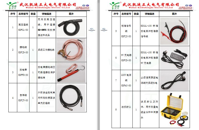 KD-OWTS配套附件如表4-1,現(xiàn)場試驗(yàn)時(shí)須使用系統(tǒng)原配高壓連線、電源線和接地線進(jìn)行連接,如線纜有缺損,需聯(lián)系廠家維修。