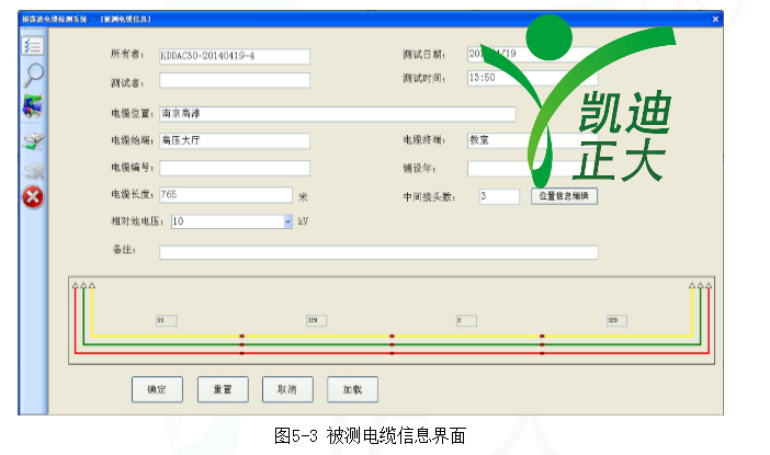 啟動(dòng)時(shí),被測(cè)電纜信息默認(rèn)加載最近一次試驗(yàn)的電纜信息。