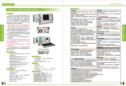 上次介紹了《2018產(chǎn)品選型手冊來了》繼電保護,互感器測試KDHG-518 變頻CT/PT互感器特性測試儀,KDJB-30三相微機繼電保護測試儀,這次要介紹繼電保護,互感器測試KDJB-60六相微機繼電保護測試儀集工控機,Windows嵌入式操作系統(tǒng)內(nèi)置觸控板,觸摸屏和具有專有設(shè)計技術(shù)的全編碼鍵盤,如通筆記本電腦一樣操作方便,高性能工業(yè)總線,觸控板,觸摸屏,DSP數(shù)字信號處理,FPGA,CFC儲存等各種高新技術(shù)之大成,獨創(chuàng)動態(tài)跟蹤技術(shù),采用24DA,可輸出每周波1600點的高精度波形,保證小電流(0-200mA)的絕對誤差<mA,徹底解決了500KV以上超高壓繼電保護工作的小電流精度問題。