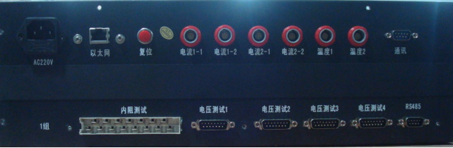 (4) 兩組電流測試接口   (5) 兩個溫度測試接口  (6) 通訊接口